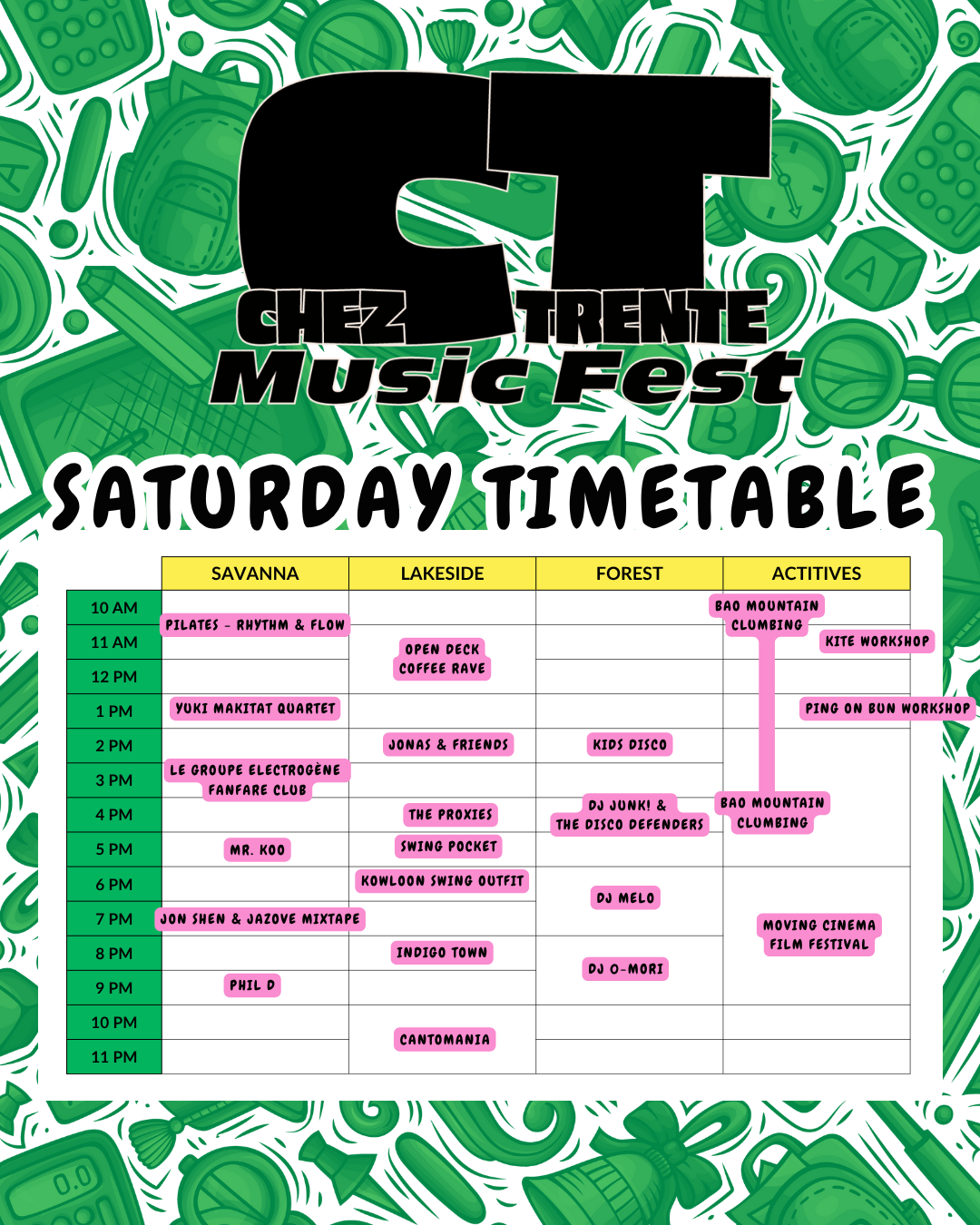 LIKE INDEPENDENT FILM SCREENINGS * PILATES AND YOGA CLASSES * ROPE COURSE * CLIMBING THE BAO MOUNTAIN * WEAVING WORKSHOP * MAKING BEGGAR’S CHICKEN IN THE WILD * PING ON BUN WORKSHOP * DRUM CIRCLE *
